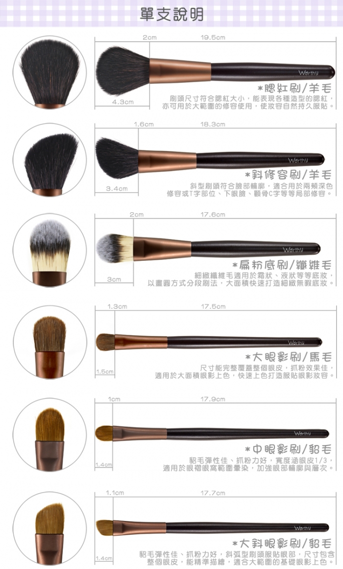 Worthy18支紫藕色彩絲壓紋刷具組(W18)