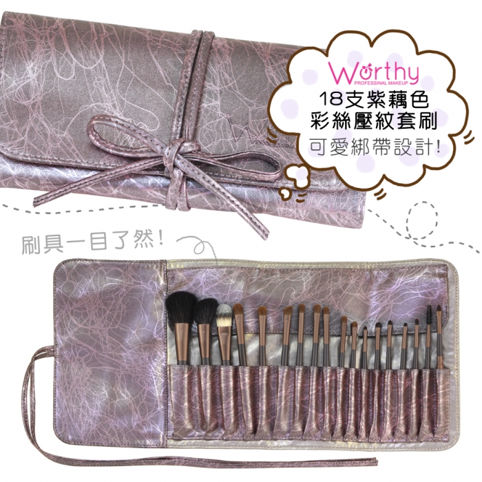 Worthy18支紫藕色彩絲壓紋刷具組(W18)