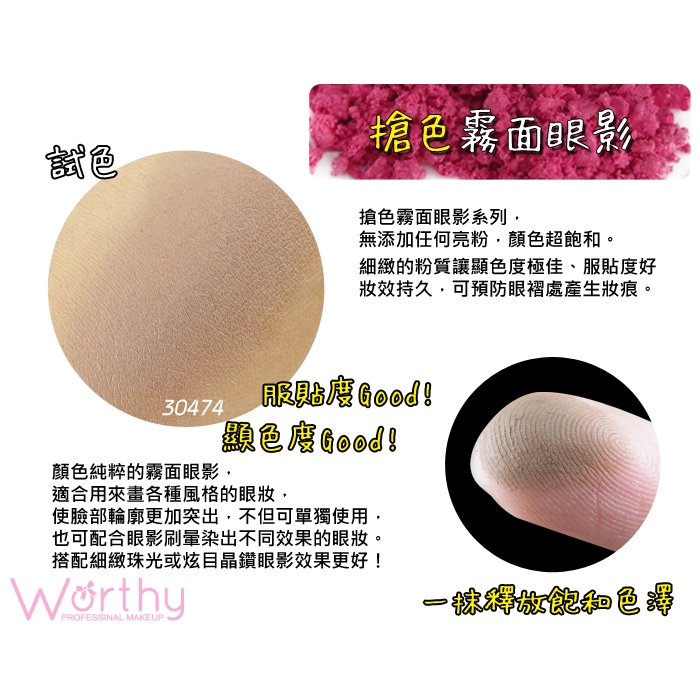 此款眼影為搶色霧面系列,無添加任何亮粉,顏色超飽和。