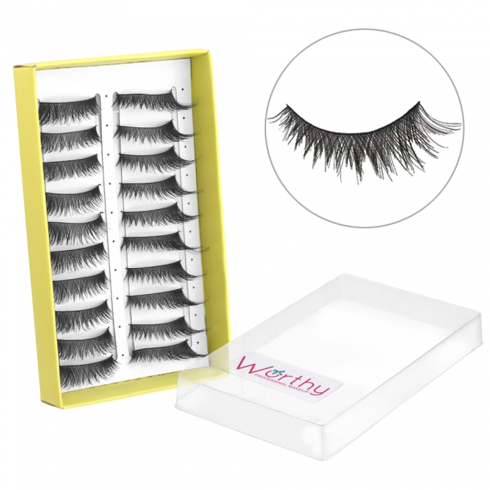 睫毛是眼睛深邃動人的主角,在整個彩妝中佔有很重要的角色,想有雙會說話水汪汪大眼,假睫毛是所有女孩缺一不可的!選擇品質好的假睫毛是非常重要的,無重力感不刺激眼皮又能展現迷人雙眸。不同款式創造不同眼妝,想要纖長濃密、捲翹翻天,或是打造娃娃無辜大眼,隨心所欲,Worthy假睫毛不易變形及損壞,戴起來與睫毛相互結合十分自然深獲許多婚紗業造型業彩妝師指定使用。注意事項:1.使用後若有過敏請即刻停止使用,並請教醫生。2.肌膚有傷口紅腫濕疹等現象時,請勿使用。3.使用中若感覺發癢刺激等異常現象發生時,請停止使用並洽詢皮膚科醫生。