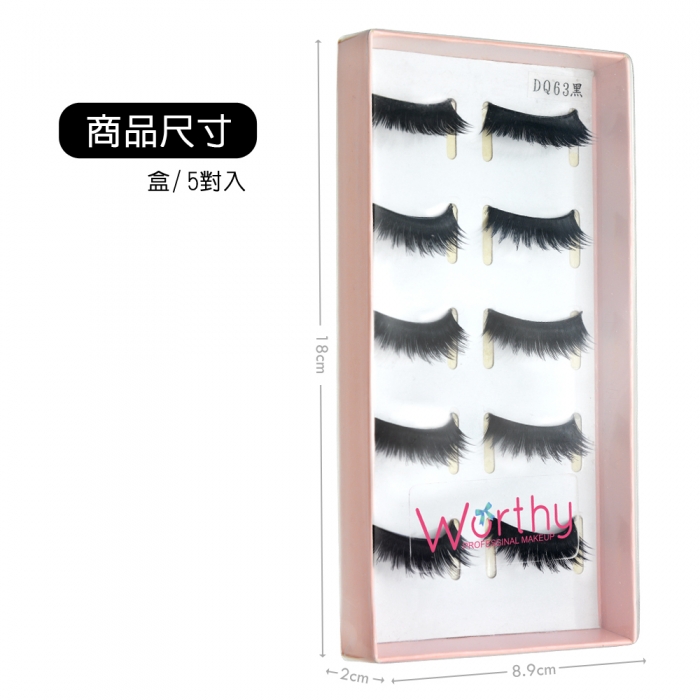 ※如需大量 訂購前請先詢問數量唷※ 【Worthy】雙層濃密假睫毛DQ63睫毛是眼睛深邃動人的主角,在整個彩妝中佔有很重要的角色,想有雙會說話水汪汪大眼,假睫毛是所有女孩缺一不可的!選擇品質好的假睫毛是非常重要的,無重力感不刺激眼皮又能展現迷人雙眸。不同款式創造不同眼妝,想要纖長濃密、捲翹翻天,或是打造娃娃無辜大眼,隨心所欲,Worthy假睫毛不易變形及損壞,戴起來與睫毛相互結合十分自然深獲許多婚紗業造型業彩妝師指定使用。 注意事項: 1.使用後若有過敏請即刻停止使用,並請教醫生。 2.肌膚有傷口紅腫濕疹等現象時,請勿使用。 3.使用中若感覺發癢刺激等異常現象發生時,請停止使用並洽詢皮膚科醫生。