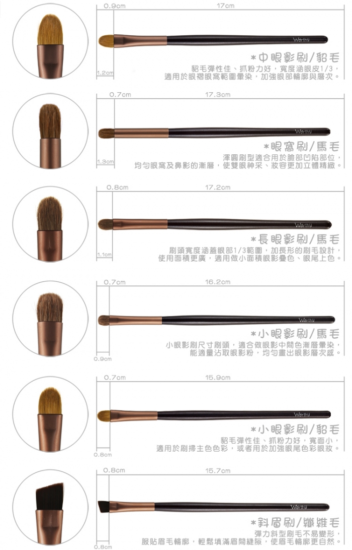 要完整呈現美麗的妝容,少不了各式各樣的彩妝工具, 每支刷具各司其職,是完美妝效的幕後英雄, 好的彩妝工具能輕鬆打造出自然、亮麗的妝容,為美麗動人指數加分! 【內容物】 腮紅刷 斜修容刷 扁粉底刷 大眼影刷 大斜眼影刷 中眼影刷 眼窩刷 長眼影刷 小眼影刷 斜眉刷 小斜眉刷 平眼線刷 圓眼線刷 圓唇刷 睫毛捲 便攜圓唇刷 品名:Worthy-十八支紫藕色彩絲壓紋刷具組 容量 : 十八支刷具+刷套 貨號: W18