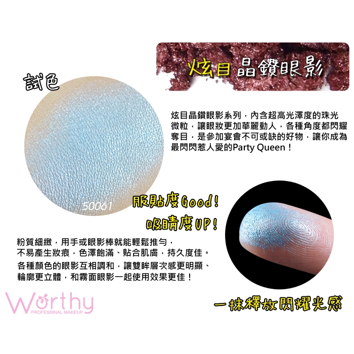 此款眼影為炫目晶鑽系列,內含超高光澤度的珠光亮粉,