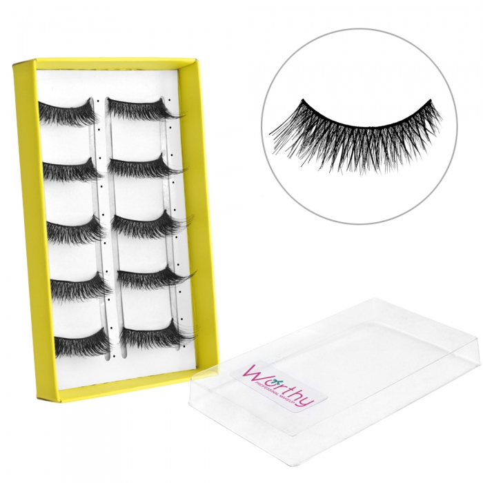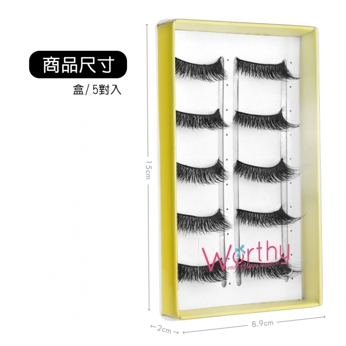 睫毛是眼睛深邃動人的主角,在整個彩妝中佔有很重要的角色,想有雙會說話水汪汪大眼,假睫毛是所有女孩缺一不可的!選擇品質好的假睫毛是非常重要的,無重力感不刺激眼皮又能展現迷人雙眸。不同款式創造不同眼妝,想要纖長濃密、捲翹翻天,或是打造娃娃無辜大眼,隨心所欲,Worthy假睫毛不易變形及損壞,戴起來與睫毛相互結合十分自然深獲許多婚紗業造型業彩妝師指定使用。 注意事項: 1.使用後若有過敏請即刻停止使用,並請教醫生。 2.肌膚有傷口紅腫濕疹等現象時,請勿使用。 3.使用中若感覺發癢刺激等異常現象發生時,請停止使用並洽詢皮膚科醫生。