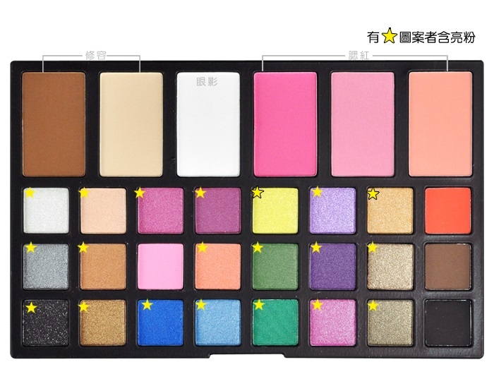30色專業粉彩盤(C30-8)2色修容+3色腮紅+24色眼影+1色純白眼影