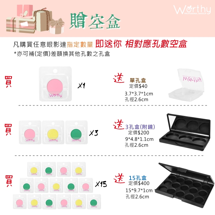 只要買一顆眼影就會送你單顆眼影空盒