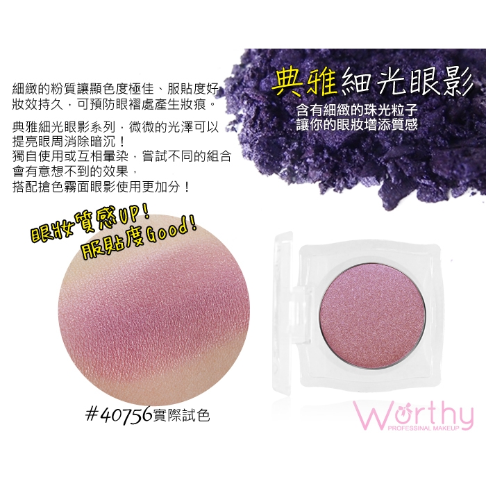 此款眼影為典雅細光系列,帶有點珠光微粒,