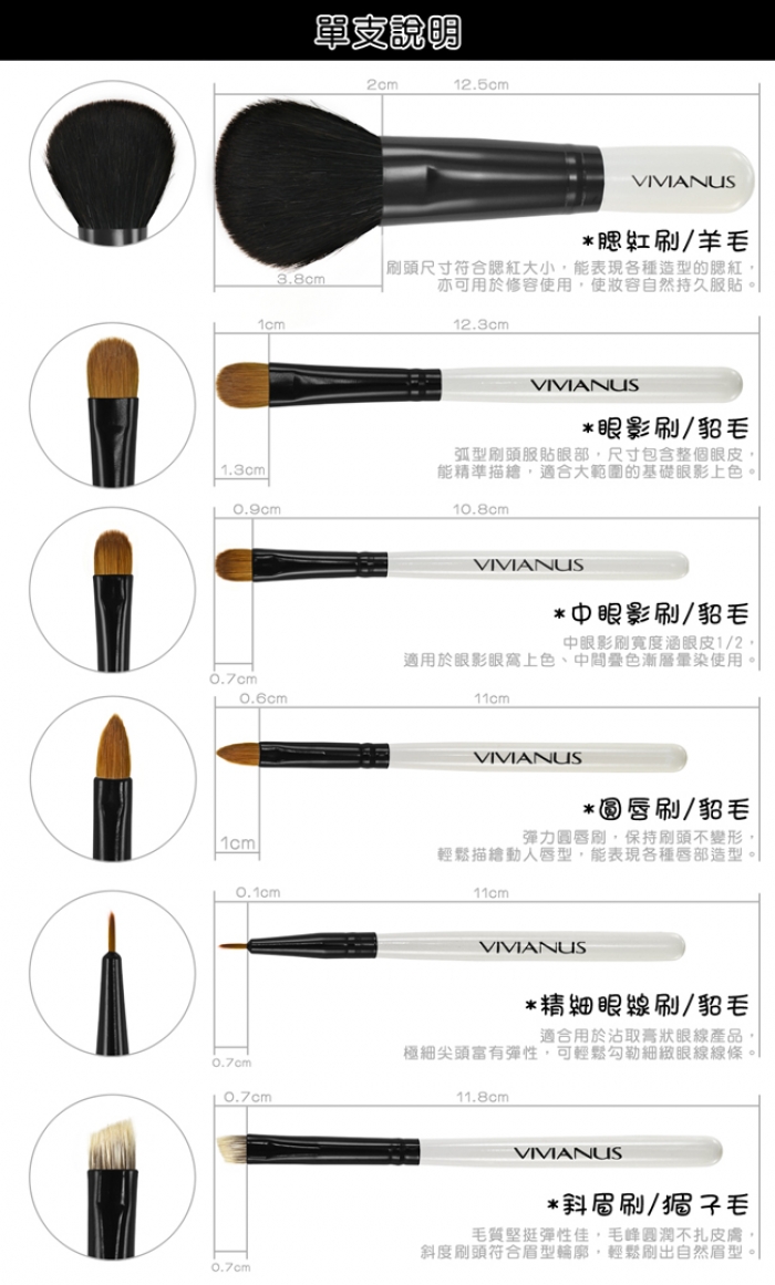 要完整呈現美麗的妝容,少不了各式各樣的彩妝工具, 每支刷具各司其職,是完美妝效的幕後英雄, 好的彩妝工具能輕鬆打造出自然、亮麗的妝容,為美麗動人指數加分! 【內容物】 腮紅刷 眼影刷 中眼影刷 圓唇刷 精細眼線刷 斜眉刷 品名:Worthy-6支黑白配質感小套刷量 容量 : 六支刷具+刷套 貨號: DD6B