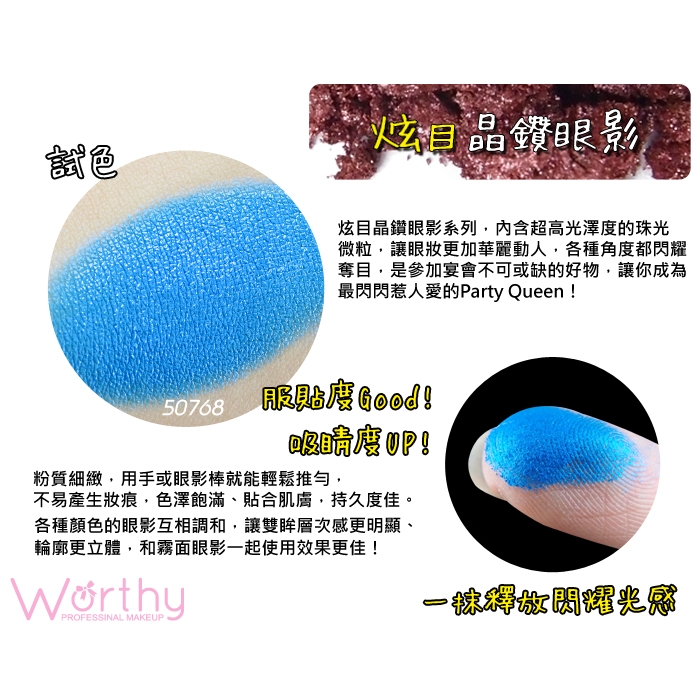 此款眼影為炫目晶鑽系列,內含超高光澤度的珠光亮粉,
