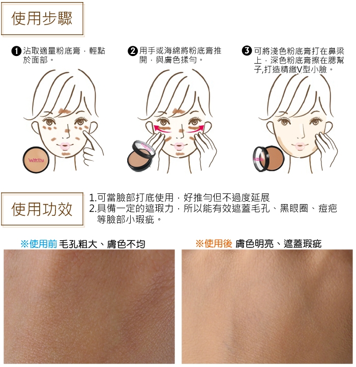 Worthy透氣粉底膏,質地清爽,無黏膩感,讓肌膚輕鬆、透氣、無負擔 控油效果佳,吸收皮膚油脂後也不黯沉,有助於維持長效的妝容 輕鬆均勻上色,給予肌膚完美的遮瑕 再搭配Worthy透氣蜜粉可加強防水防汗的效果,營造完美無瑕的膚質~ ◎容量:12g/外盒尺寸請參考商品圖 注意事項: 1.使用後若有過敏情形,請立即停止使用,並諮詢醫生 2.請放置陰涼處,避免高溫、受潮,並密蓋以免變質。