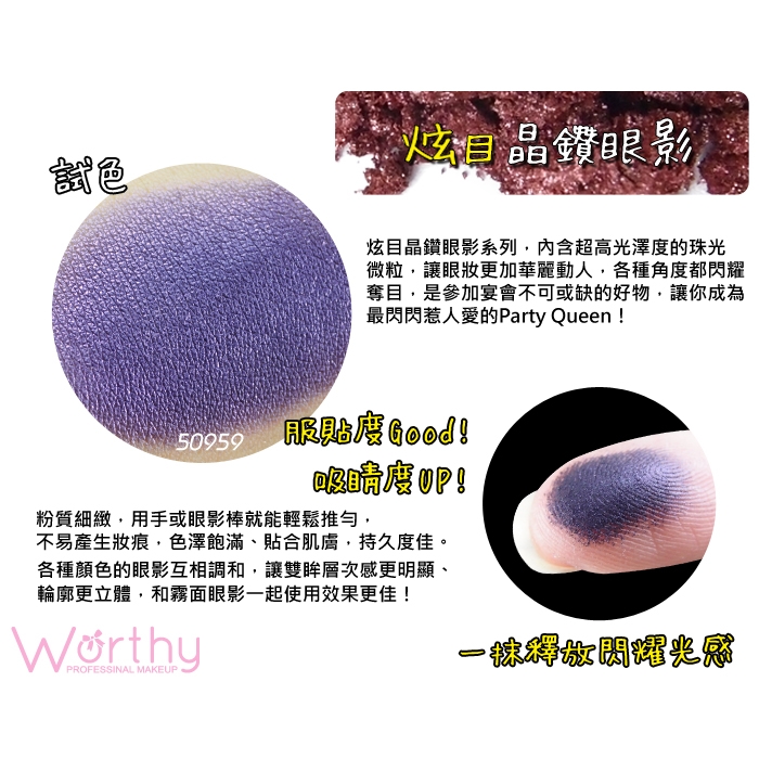 此款眼影為炫目晶鑽系列,內含超高光澤度的珠光亮粉,