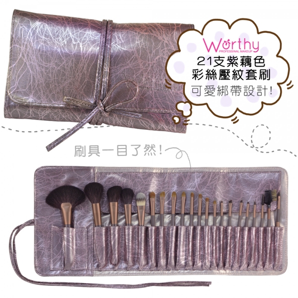 Worthy21支紫藕色彩絲壓紋刷具組(W21)